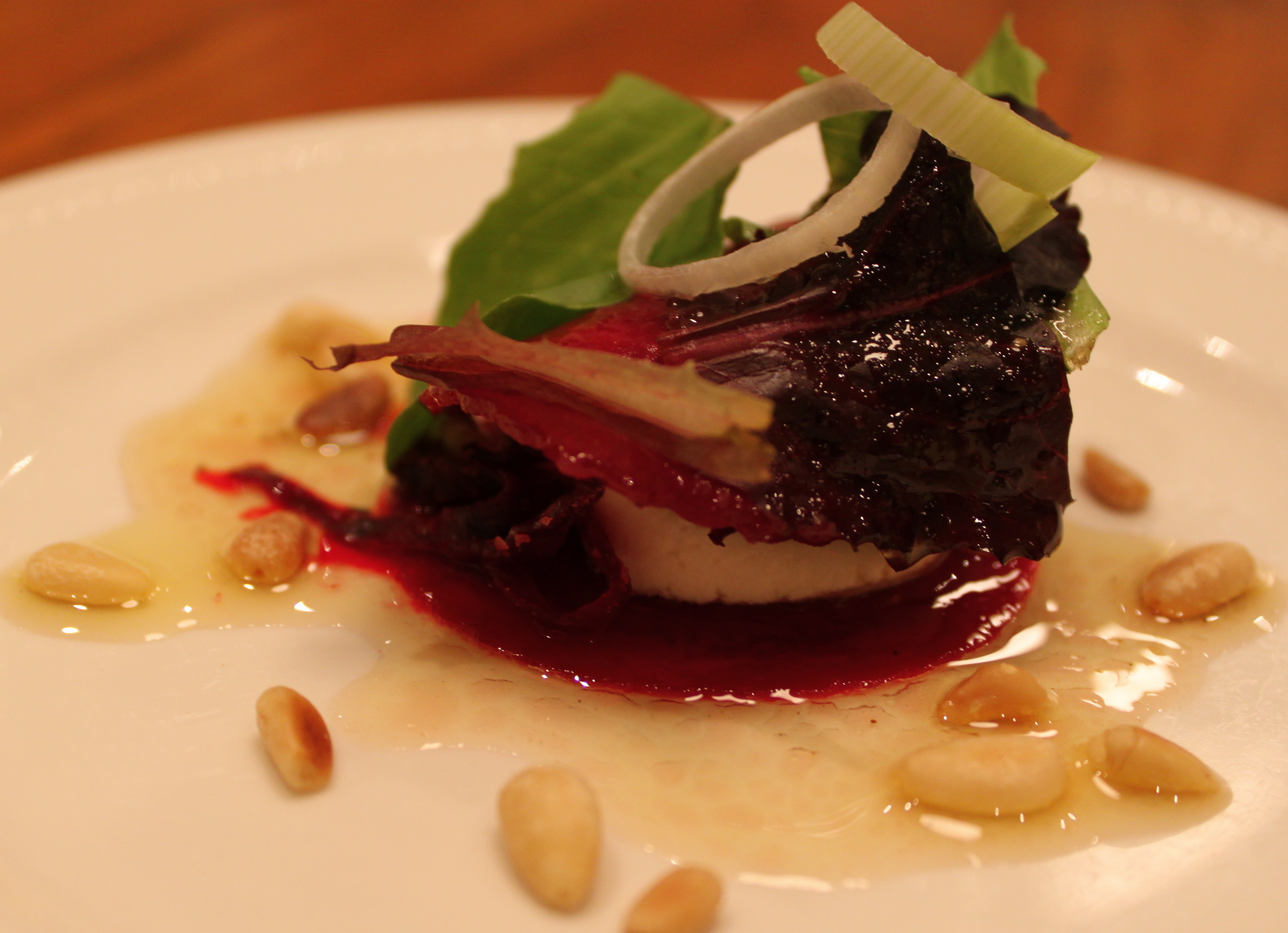 Marinated Beets with goat’s cheese, pine nuts and baby greens