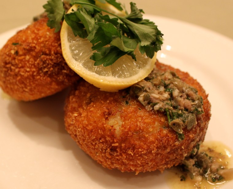Fish cakes with anchovy caper sauce