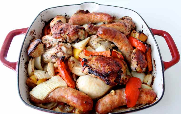 Baked chicken and sausage