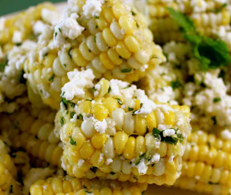 The corn we bought last weekend needed a bit of help. It wasn’t quite sweet; a few of the cobs were underdeveloped. Feta and mint, the star taste combination of the summer in our house (great with watermelon) came to the rescue. I mixed corn’s old ally, butter, with chopped mint, a little cayenne, some black pepper and lots of crumbled feta and tossed with cooked cobs. The butter added sweetness, the feta some savoury depth and saltiness and the mint made it taste just a little like summer may never end.