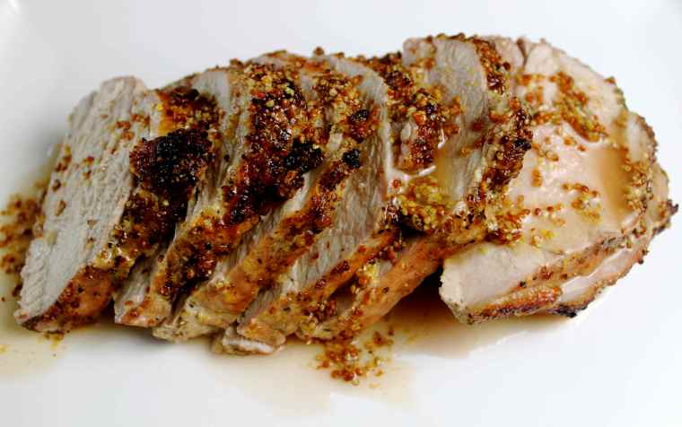 Maple planked pork with maple mustard glaze